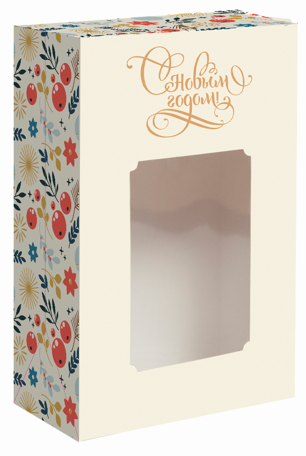 В этом году дарим самую нарядную праздничную упаковку — коробки с окном из мягкого картона в ассортименте.