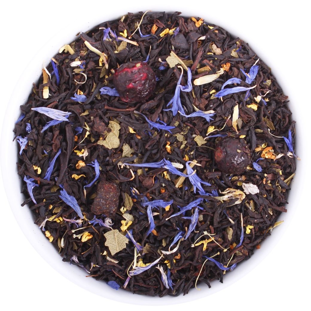 Состав: чёрный индийский чай, чёрный цейлонский чай, ягоды и листья чёрной смородины, лепестки василька, османтус.
